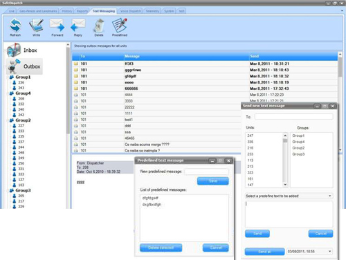 Modul SMS: Dispecerul poate trimite mesaje catre oricare alta statie radio sau grup de statii radio si poate de asemenea sa primeasca mesaje de la statii in SafeDispatch intr-un dispozitiv de iesire (ecran) dedicat.Modul E-mail: Trimite si primeste mesaje catre si de la oricare alta adresa e-mailModul Rapoarte: MOTOTRBO ON/OFF | Raport de depasire a vitezei | Foaie de parcurs | Raport de stationari | Raport de flota | Vehicule in zona...Modul Voce Dispecerat: Permite dispecerului sa comunice, sa inregistreze si sa initieze apeluri cu soferii, direct de la propriul calculator. |